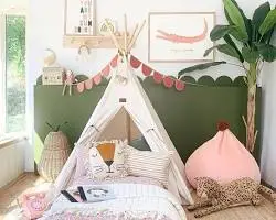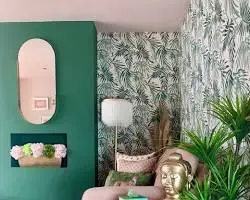 Introduce geometric or floral patterns in pink and green for a fun and energetic space.