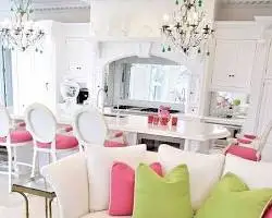 Combine pink and green with clean lines and natural light for a fresh and airy feel.