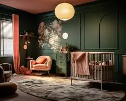 Create a dreamy and calming space for a baby girl with soft pink and green hues.