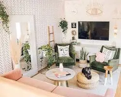 Pink and green, a classic color combination that exudes freshness, vitality, and a touch of retro charm. When these two hues are brought together in a living room, they create a space that is both inviting and stimulating.