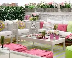 Extend the pink and green palette to your patio or balcony for a seamless indoor-outdoor flow.
