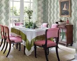 Set a cheerful and inviting dining table with pink and green tableware and accents.